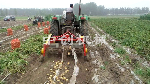 該機(jī)與播種機(jī)配套使用,專門用于馬鈴薯、紅薯、芋頭、大姜等農(nóng)作物的收獲,可收獲雙壟雙行,收獲后集條式鋪放果實(shí),更深得用戶的青睞。配套動(dòng)力為29.4 ~ 36.8 kW輪式拖拉機(jī)。